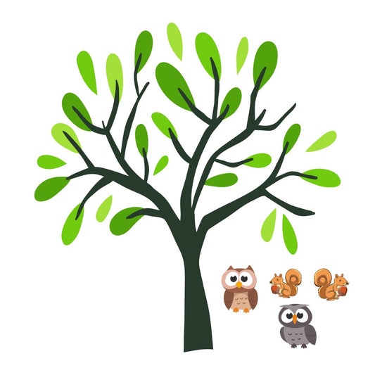 Adesivo Albero gufetti e scoiattolini