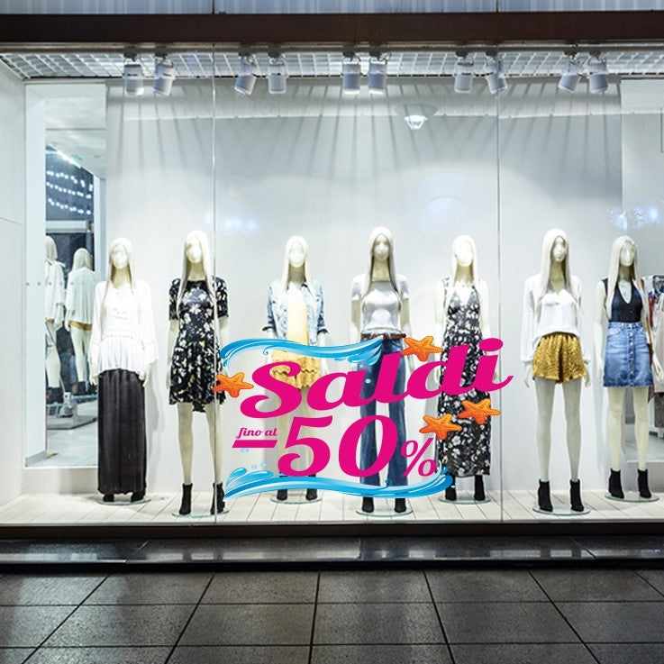 Sticker saldi perfetto per vetrine e ad ogni genere di superficie liscia